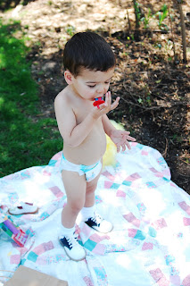 Whatever you call them, I made Nate a pair, well two actually. I made the first pair out of red seersucker and they turned out fine except they were way too big. I had read several online reviews of this McCall's pattern and people said it runs small so go up a couple sizes. I made a size 4 and the length was okay but it was really wide, ridiculously wide, like Nate was swimming in a pool of red seersucker. I tried taking it in a bit but it's still looks silly so I think for $4 of fabric and an hour of time I'll just make a new one (maybe next summer Nate will be short and fat and can wear the old one!). For the second romper I used this madras from Joann's. I had seen it awhile ago and have been waiting for the right project and for it to go on sale before I bought it. I made a size 2 so it wouldn't be so wide, but then I also lengthened the pattern so it would fit in the crotch. It's a perfect fit.